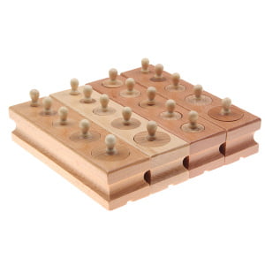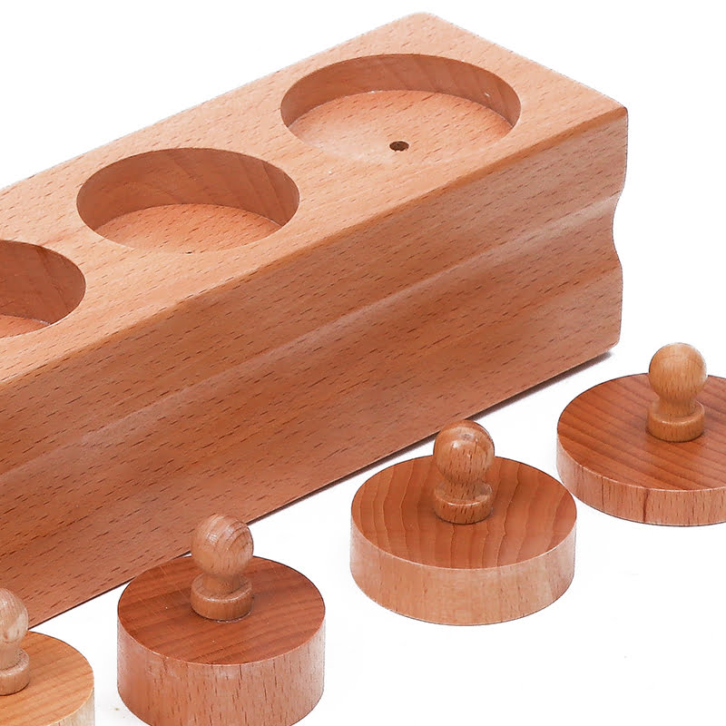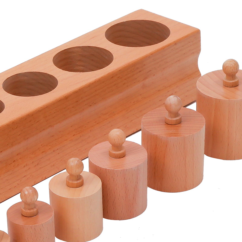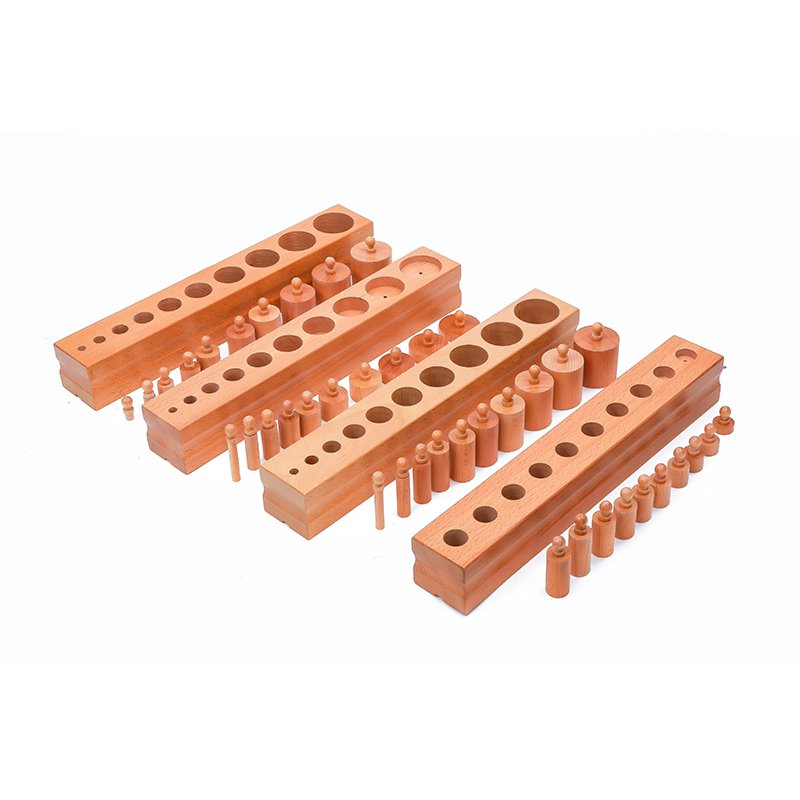 Klade z valji so zaznavni material. Za držanje posameznega valja mora otok uporabljati 3 prstni prijem, kar je zelo dobra priprava na pisanje. Otrok se uči vizualnega in taktilnega razločevanja velikosti, kar je priprava na matematiko. Material ima kontrolo napake, saj otrok kmalu samo ugotovi, da posamezen valj ne sovpada z vsako odprtino.